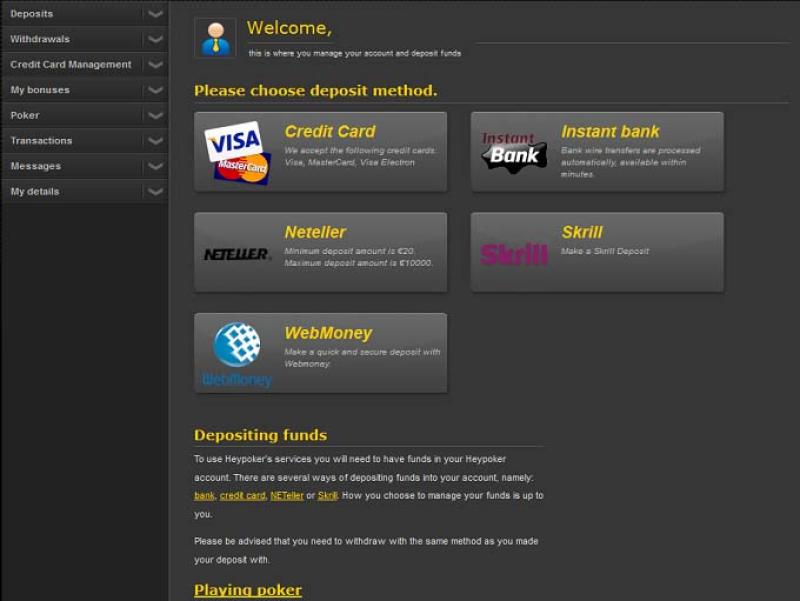 O cassino Heypoker é de propriedade da mesma empresa que é dona do Redbet e do Whitebet e, assim como seus cassinos irmãos, eles oferecem saques instantâneos práticos para carteiras eletrônicas como Neteller e Skrill e oferecem alguns dos slots mais populares e melhores, como NetEnt, WMS e muitos outros.