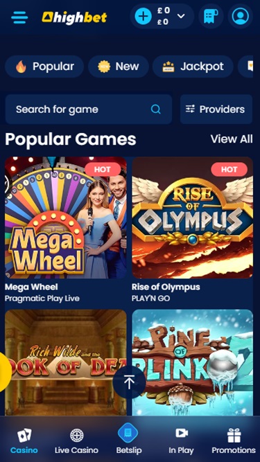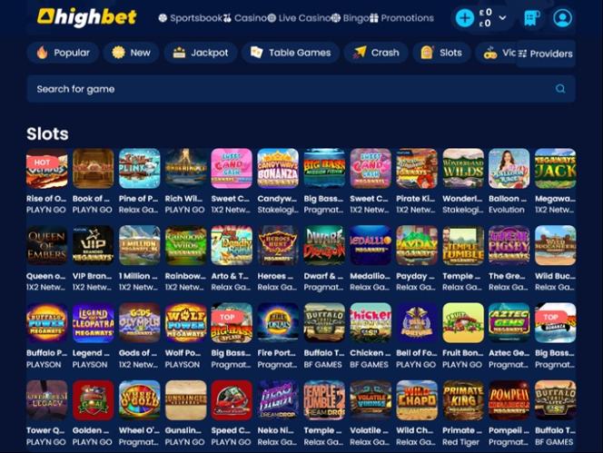 A operadora colabora com desenvolvedores de software de cassino online populares, que fornecem à Highbet uma gama completa de jogos de cassino. Muitos nomes conhecidos figuram na lista de fornecedores de jogos do cassino (Evolution Gaming, Ezugi, NetEnt, Microgaming, Yggdrasil...).