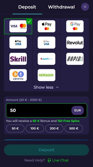 Antes disso, vale mencionar que o processo de cadastro é super-rápido e simples , bastando preencher informações básicas para acessar o painel do jogador. Após escolher um código promocional e resgatar o pacote de boas-vindas, se desejar, você poderá começar a fazer apostas com dinheiro real e aproveitar a vasta biblioteca de jogos do cassino, que inclui diversos gêneros, uma boa variedade de métodos de pagamento confiáveis, excelentes ofertas promocionais e muito mais.