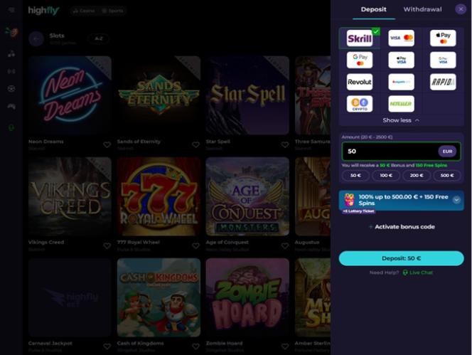 HighFlyBet é uma excelente plataforma de cassino, adequada tanto para jogadores de cassino quanto para apostadores esportivos , e é regulamentada e licenciada pela Curaçao Gaming Board. Jogadores do Canadá, Bélgica, Áustria, Alemanha e Portugal são bem-vindos.