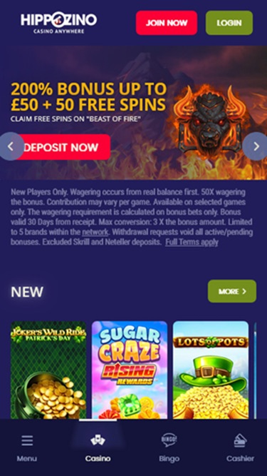 O HippoZino Casino é um site de apostas online fundado em 2013 pela ProgressPlay Ltd. O cassino possui uma vasta biblioteca de jogos e é conhecido por seus pagamentos rápidos de ganhos, embora os altos requisitos de apostas em promoções possam ser um fator desanimador para alguns jogadores.