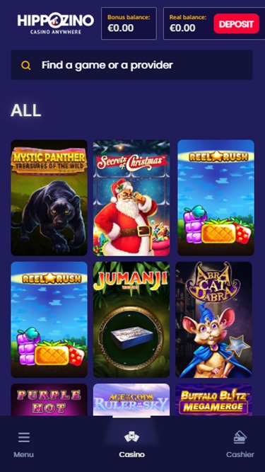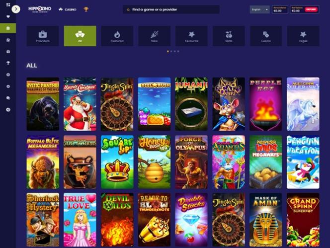 O HippoZino Casino é operado pela Microgaming, Net Entertainment, Playtech, 1x2gaming, Barcrest, Big Time Gaming, ELK Studios, Evolution Gaming, EYECON, lightningboxgames, Play'n GO, Rabcat, Thunderkick, Pragmatic Play, Nolimit City, Red Tiger Gaming, Spinomenal, SYNOT Games, Skywind, Triple Edge Studios, Northern Lights Gaming, Stormcraft Studios, Switch Studios, All41 Studios, Gameburger Studios, Pulse 8 Studios, Slot Factory, Neon Valley Studios, Shuffle Master, SpinPlay Games, Real Dealer Studios, GONG Gaming, On Air Entertainment, Buck Stakes Entertainment, Caleta Gaming, Games Global, Blueprint Gaming, Greentube, Tom Horn Gaming, WMS, Inspired Gaming, SG Interactive, Red7Mobile, CORE Gaming, Scientific Games, Reel Time Gaming, Iron Dog Studio, Old Skool Studios, Foxium, Betdigital, Just For The Win, PearFiction Studios, Wild Streak Gaming, Slingshot Studios, Fortune Factory Studios, Gamevy, Crazy Tooth Studio, Alchemy Gaming, Black Pudding Games, Snowborn Games, Hacksaw Gaming, Gold Coin Studios, Half Pixel Studios, Aurum Signature Studios, Lucksome Gaming, Area Vegas, Wishbone Games, Circular Arrow, HammerTime Games, INO Games, Nailed It! Games, Neko Games, Reel Kingdom and Oros Gaming e os jogos do casino estão disponíveis através de uma plataforma online. Um site móvel também está disponível para quem deseja jogar em seus smartphones ou tablets.