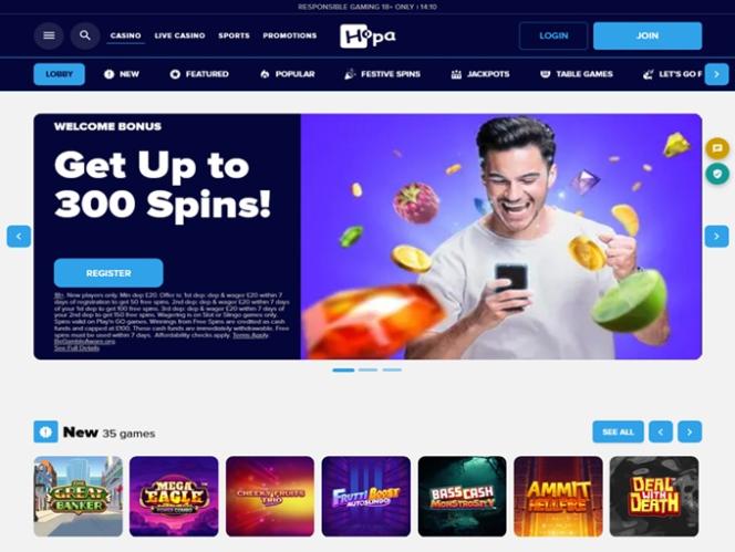 O Hopa Casino é um site de apostas online fundado em 2005 pela G International Limited. O cassino oferece uma grande variedade de jogos, além de pagamentos de ganhos relativamente rápidos e um bom serviço de atendimento ao cliente, tornando o Hopa um ótimo lugar para jogar.Informações do cassino