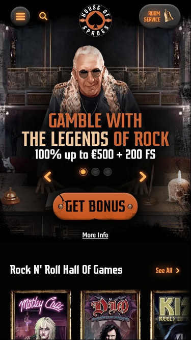 Este espaço de jogos possui uma identidade visual única e oferece uma plataforma de cassino incrível com soluções gráficas autênticas inspiradas na música rock e em estrelas populares do gênero como embaixadores da marca.