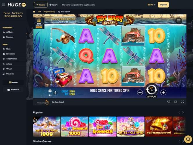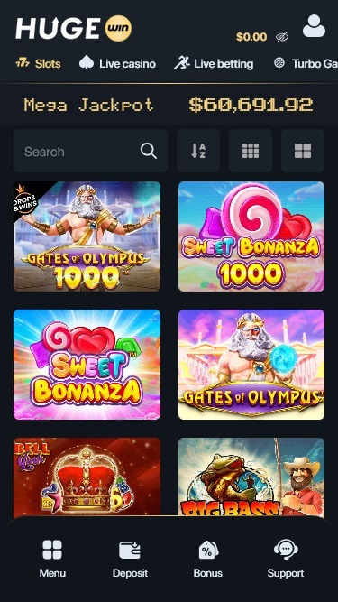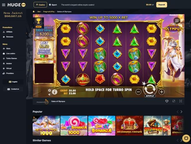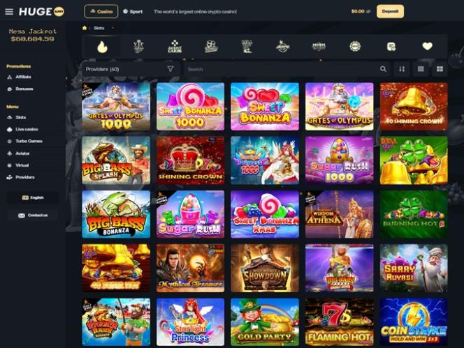 A seleção de caça-níqueis no HugeWin Casino é incrivelmente vasta. Você não terá problemas para encontrar os melhores jogos para você em pouco tempo. Recomendamos que você experimente estes títulos populares: Sweet Bonanza, 9 Coins, Rich Wilde and the Tome of Madness, Starlight Christmas, Gates of Olympus, TNT Bonanza, 100 Power Hot, Book of Demi-God V, 5 Sevens, Blazing Coins 100, Green Chilli 2, Art of Gold, Midas Fortune, Asgardian Rising, Buffalo King Megaways, 10000 Wishes e Blazing Wilds Megaways.