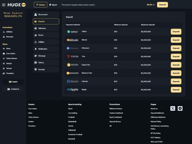 HugeWin Casino não aceita jogadores dos seguintes países: Ontário.