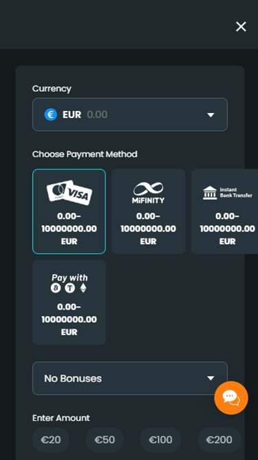 O cassino aceita tanto moedas fiduciárias quanto criptomoedas.