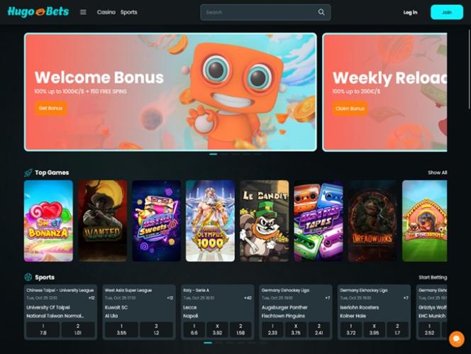 A HugoBets é um enorme site de cassino online e apostas esportivas que oferece aos jogadores uma ampla seleção de opções de jogos. A marca prioriza a diversidade, por isso você poderá jogar centenas de jogos de cassino emocionantes, incluindo caça-níqueis com dinheiro real, jogos com crupiês ao vivo, jogos de mesa e jogos de crash, além de ter acesso a uma impressionante variedade de promoções, bônus, torneios e outras recompensas.