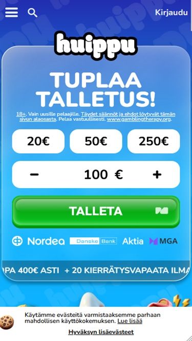 É claro que, além de jogos emocionantes, os jogadores também podem participar de diversas promoções e reivindicar bônus durante sua estadia no Huippukasino. Pacotes de boas-vindas, ofertas de recarga, torneios, sorteios e rodadas grátis estão disponíveis, permitindo que você eleve suas sessões a um nível superior.