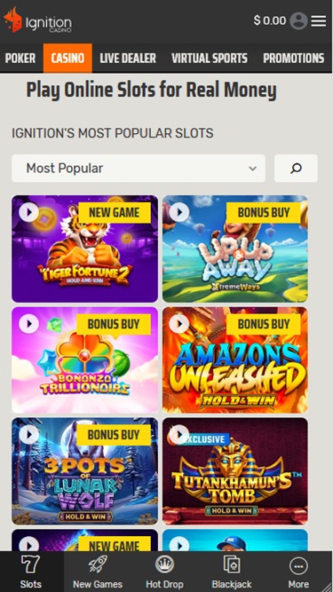 O Ignition Casino oferece uma boa variedade de caça-níqueis em vídeo, além de jackpots progressivos, que dão aos jogadores a chance de ganhar grandes prêmios, na casa dos milhares de dólares.