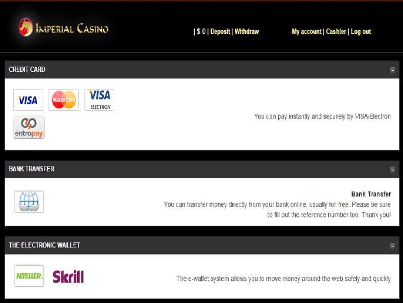 Muito bom, é isso que o Imperial Casino é! Oferece um serviço um pouco melhor do que muitos outros cassinos da Playtech, sempre rápidos nos saques e sempre enviam promoções diferentes e exclusivas! Com um requisito de aposta justo e baixo! Depósito mínimo de 15 e saque de 15, é ótimo! :) O site parece um pouco antigo,...