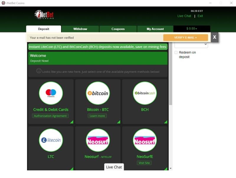 Ao analisar os termos e condições do iNetBet Casino, não encontramos nada que se destaque como injusto ou predatório para os jogadores. O sistema bancário do iNetBet é bom para um site voltado para o público americano, pois aceita transações por transferência bancária, EcoCard, EntroPay, Neteller, OKPay, Paysafecard, PaySpark, Skrill, Maestro, MasterCard, UseMyFunds e Visa. A velocidade das transações bancárias é boa, com saques sendo processados rapidamente, especialmente considerando que o cassino atende ao mercado de apostas americano. Os depósitos são processados instantaneamente, como se espera de qualquer cassino confiável. Aliado à criptografia, o sistema bancário é bastante eficiente.