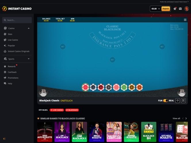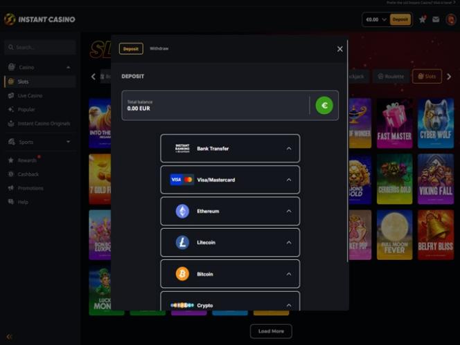 Vale mencionar também que o Instant Casino é um site que aceita criptomoedas e oferece jogos de cassino de alta qualidade de diversos gêneros, incluindo jogos com crupiês ao vivo e categorias como roleta , blackjack , bacará , pôquer , programas de jogos e muito mais. O site oferece um programa de fidelidade, além de promoções e torneios atraentes.