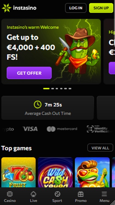 Instasino não recebeu o endosso do Wizard of Odds.