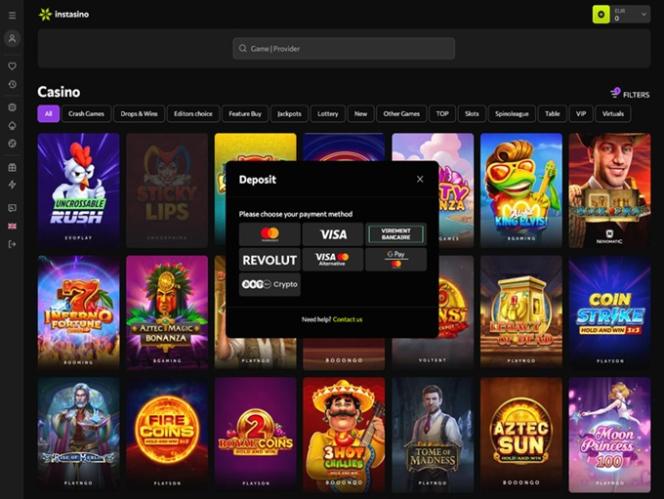 Se você prefere métodos de pagamento tradicionais ou gosta de apostar com criptomoedas, no Cassino Instasino você encontrará diversas opções para depósitos e saques, incluindo Cardano , Bitcoin Cash, Bitcoin, Dash , Dogecoin, Ethereum, Litecoin, Solana , Tron, USD Coin, Tether, Ripple...