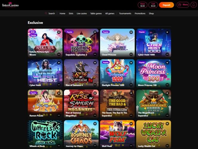 O InterCasino é oferecido pela Amaya, Microgaming, Net Entertainment, Playtech, 1x2gaming, Barcrest, Big Time Gaming, ELK Studios, Evolution Gaming, EYECON, Ezugi, Habanero Systems, iSoftBet, lightningboxgames, Oryx, Play'n GO, Quickspin, Rabcat, Relax Gaming, Thunderkick, Yggdrasil, Wazdan, Realistic Games, Booming Games, Stakelogic, Pragmatic Play, Nolimit City, Red Tiger Gaming, Fantasma Games, Kalamba, Spin Games, Skywind, Triple Edge Studios, Northern Lights Gaming, Evoplay, Stormcraft Studios, OneTouch, Electric Elephant Games, Pocket Games Soft, Triple PG, Bulletproof Games, All41 Studios, Gameburger Studios, Pulse 8 Studios, Slot Factory, Neon Valley Studios, Shuffle Master, SpinPlay Games, HungryBear Gaming, SmartSoft Gaming, Blue Guru Games, Buck Stakes Entertainment, Games Global, Bally Technologies, bluberi, Endemol Games, Leander Games, NextGen, NYX Interactive, Push Gaming, Tom Horn Gaming, WMS, Gaming Realms, SG Interactive, Gamomat, Red7Mobile, CORE Gaming, Scientific Games, Side City Studios, Iron Dog Studio, Foxium, Betdigital, Just For The Win, Reflex Gaming, PearFiction Studios, Wild Streak Gaming, Slingshot Studios, Fortune Factory Studios, Jade Rabbit Gaming, STHLM Gaming, 4ThePlayer, AvatarUX, Gamevy, Crazy Tooth Studio, Pirates Gold Studios, ReelPlay, Japan Technicals Games, Alchemy Gaming, Snowborn Games, Boomerang Studios, Hacksaw Gaming, Max Win Gaming, Gold Coin Studios, Bang Bang Games, Slotmill, SilverBack Gaming, Peter And Sons, Aurum Signature Studios, Area Vegas, RAW iGaming, Leap Gaming, Wishbone Games, Spribe, Print Studios, Gaming Corps, Four Leaf Gaming, INO Games, Nailed It! Games, Atomic Slot Lab, Neko Games, Reel Kingdom, Oros Gaming, Indigo Magic, Light & Wonder and Live88 , proporcionando uma grande variedade de jogos aos seus clientes. Os jogos estão disponíveis diretamente no seu navegador, sem necessidade de download para se cadastrar, depositar e jogar.