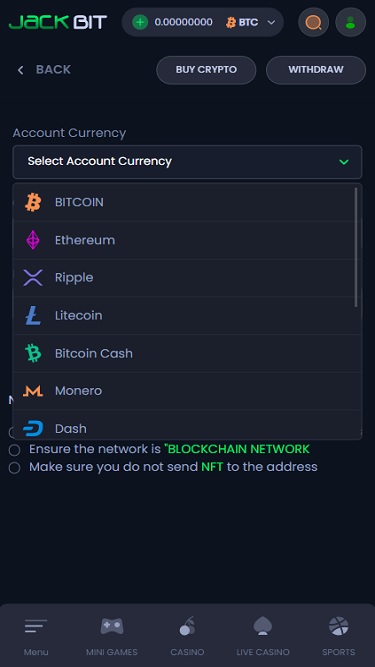 Além das opções de criptomoedas, os jogadores também podem escolher determinados cartões de crédito e débito, carteiras eletrônicas e outros sistemas de pagamento. Lembre-se de que os fundos depositados devem ser usados e apostados pelo menos uma vez antes que um jogador possa solicitar um saque, e que os métodos de depósito e saque disponíveis variam de acordo com o país.