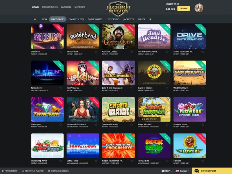 Existem centenas de caça-níqueis de vídeo para jogar no Jackpot Knights Casino, com o site oferecendo aos jogadores a chance de girar os rolos em alguns dos melhores jogos do mundo. Os apostadores também encontrarão uma grande variedade de jackpots progressivos, que podem mudar sua vida instantaneamente com prêmios que valem milhões de euros.