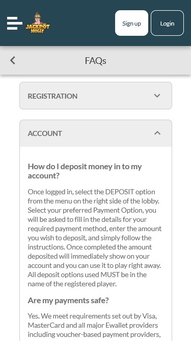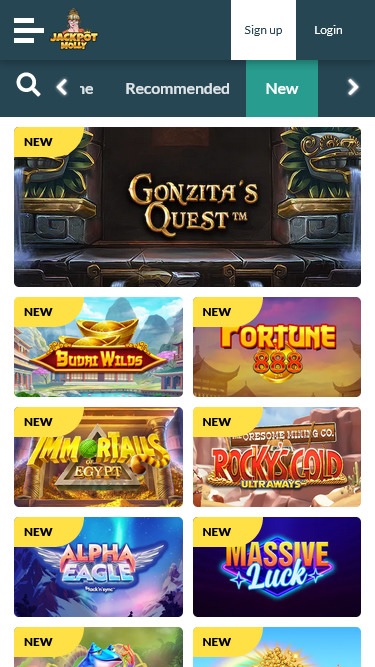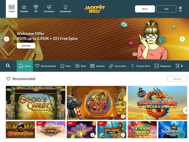 Jackpot Molly é um site criado para atender às necessidades dos jogadores de cassino online modernos e é otimizado para todos os dispositivos disponíveis, desktops e celulares, independentemente do tamanho da tela. O cassino utiliza um tema de fundo claro, com um visual moderno, simples e focado nos jogos.