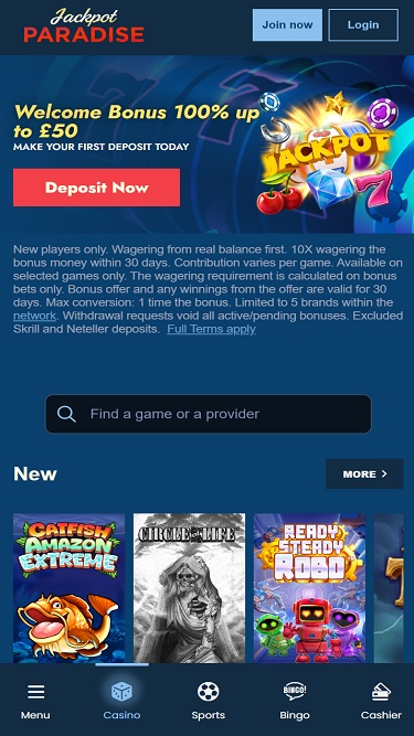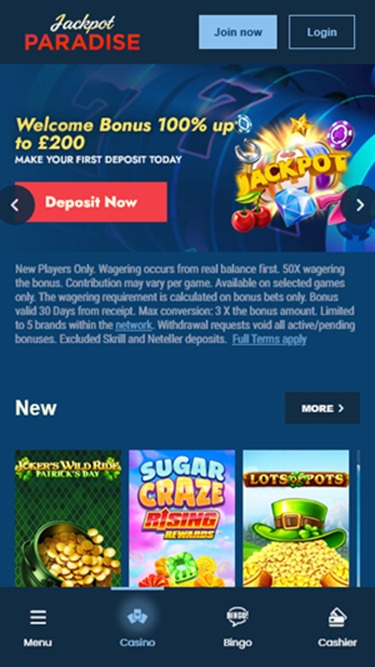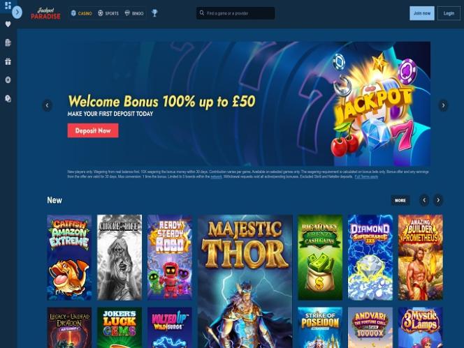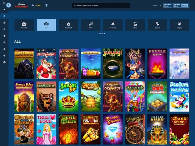 Jackpot Paradise é um cassino online pertencente e operado pela Progress Play Ltd. O Jackpot Paradise está em operação desde 2014 e conquistou uma reputação positiva entre os jogadores por sua vasta biblioteca de jogos de cassino e excelente gestão.Informações do cassino