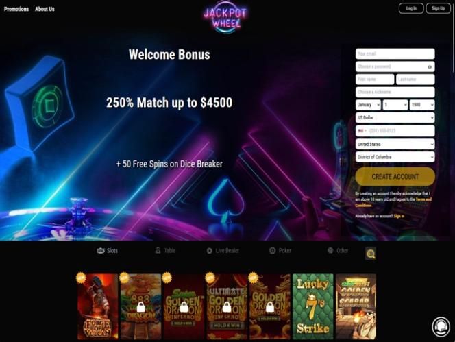 O Jackpot Wheel Casino é um site de apostas online pertencente e operado pela Ardway Limited, que iniciou suas atividades em 2016. O cassino atende ao mercado de apostas americano e oferece uma variedade de caça-níqueis e jogos de mesa para jogadores em computadores e dispositivos móveis. Infelizmente, nem tudo são flores no Jackpot Wheel, já que o cassino possui um tempo de espera de 48 horas para os ganhos, limites de saque baixos e tempos de pagamento mais lentos que o normal. Outro ponto problemático é a aparente falta de uma licença de jogos por parte do grupo, o que deixa os jogadores sem o respaldo de um órgão governamental em caso de disputa.