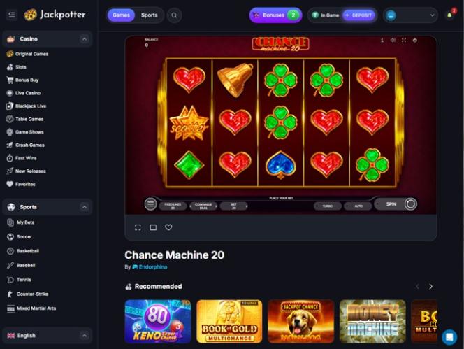 Existem mais de seis mil jogos de slots disponíveis no Jackpotter Casino , onde os jogadores podem escolher desde slots clássicos até slots de vídeo modernos com recursos empolgantes.