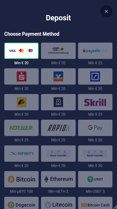 Não recomendo este cassino. Após 1 depósito, ganhei $ 500, mas eles não aceitaram meus documentos por 8 dias, ou seja, um extrato bancário com todos os dados necessários e até mesmo um código QR para autenticação. Escrevi várias reclamações em vários fóruns, mas eles não me responderam por um longo tempo.