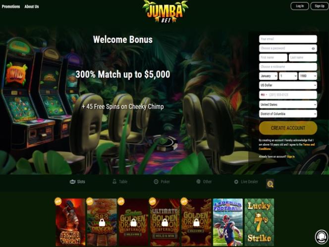 O Jumba Bet Casino é um site de apostas online lançado no final de 2016 e atualmente operado pela Ardway Limited, a mesma empresa que supervisiona as operações do Jackpot Wheel Casino. O site oferece serviços em todo o mundo, incluindo os Estados Unidos. O cassino tem alguns pontos positivos, mas infelizmente é um pouco prejudicado por limites de saque baixos e tempos de pagamento de ganhos mais lentos do que o normal.