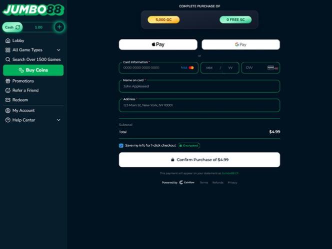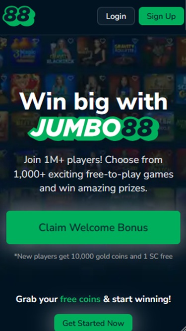 O Jumbo88 Casino é um site de jogos sociais completo, com recursos de sorteios empolgantes e foco em atrair jogadores dos Estados Unidos (com algumas restrições estaduais). Oferece uma ampla variedade de jogos de cassino, incluindo caça-níqueis online, jogos de crash, jogos de mesa e jogos com crupiês ao vivo. Os jogadores podem participar de diversas promoções, bônus e eventos nas redes sociais, onde podem ganhar Moedas de Ouro e Moedas de Sorteio.