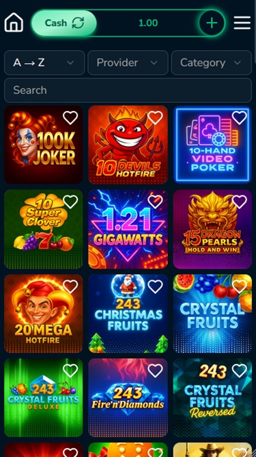Em toda a gama de desenvolvedores de software disponíveis, comece suas sessões com jogos produzidos por alguns dos provedores mais influentes, como Greentube , Kalamba Games , Playson , Vivo Gaming , Booming Games , BGaming , Hacksaw Gaming , Slotmill , Novomatic e 3 Oaks Gaming .
