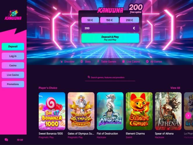 O Kanuuna Casino é um cassino online fundado em 2021, pertencente e operado pela 1Up Services Ltd. Graças à sua impressionante coleção de jogos, o cassino rapidamente começou a atrair a atenção de jogadores da Finlândia e, além disso, todos os jogadores podem participar de um excelente Programa VIP com níveis ilimitados!