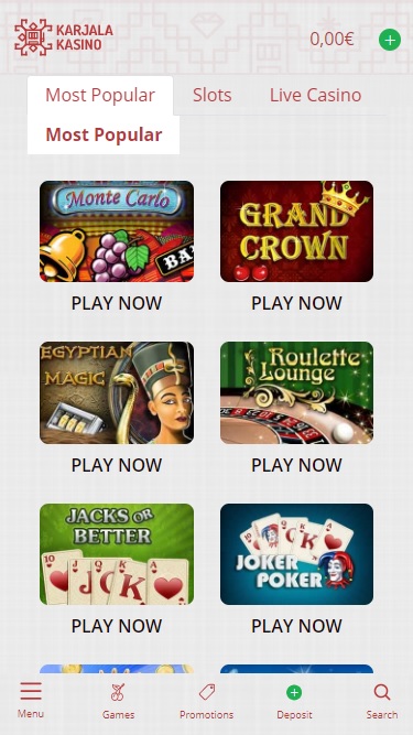 O Karjala Kasino é operado por Microgaming, Net Entertainment, Big Time Gaming, ELK Studios, Evolution Gaming, lightningboxgames, Play'n GO, Rabcat, Thunderkick, Realistic Games, Fantasma Games, Triple Edge Studios, Gameburger Studios, Games Global, 2by2 Gaming, Merkur Gaming, NeoGames, NextGen, Scientific Games, Reel Time Gaming, Foxium, Just For The Win, Storm Gaming Technology and High 5 Games e os jogos do cassino são fornecidos por meio de uma plataforma online de jogo instantâneo, acessível pelo navegador da internet. O site é fácil de navegar e tem um design limpo. O jogo em dispositivos móveis também está disponível, permitindo jogar em smartphones ou tablets.