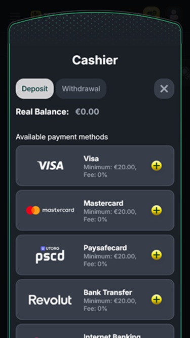 💰 Depósito mínimo€20/€30 (Bitcoin)