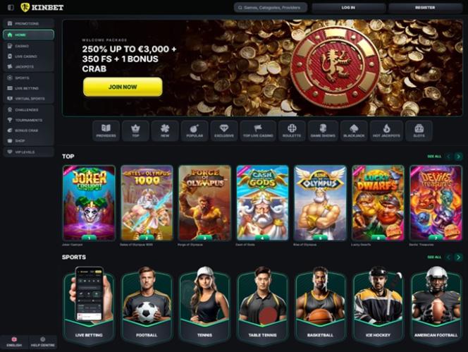 A Kinbet é um site de jogos de azar moderno com uma extensa lista de jogos de cassino e opções de apostas esportivas para seus jogadores. Seu objetivo é proporcionar uma experiência completa de jogo com caça-níqueis, jogos com crupiês ao vivo e jogos de mesa. Com um forte foco na variedade de jogos, disponibilidade de criptomoedas e um amplo programa promocional com bônus, acreditamos que muitos irão apreciar todas as opções de entretenimento que esta marca oferece.