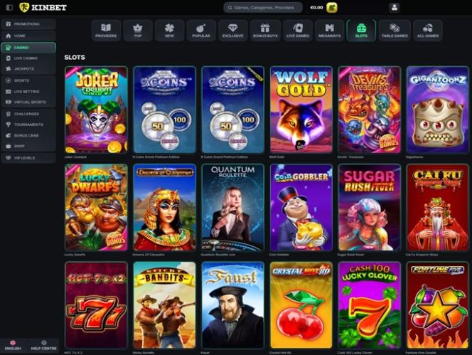 A equipe da Kinbet entendeu essa missão e a operadora adquiriu licenças de mais de 140 desenvolvedores de software exclusivos! Comparado a muitos concorrentes no mercado, esse número expressivo resulta em milhares de jogos que variam em gênero, mecânica, recursos e temas. Se você adora explorar novos jogos a cada vez que joga, este é o lugar certo para você.
