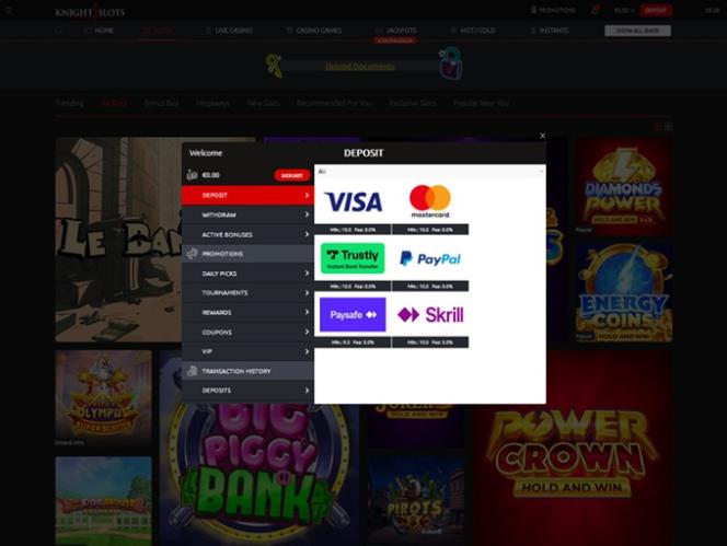 Transações com criptomoedas não estarão disponíveis no KnightSlots Casino, o que pode ser uma decepção para muitos jogadores, visto que esse tipo de pagamento se tornou muito mais comum nos últimos anos. No entanto, existem diversas opções bancárias populares para os jogadores, como Visa, Mastercard, Astropay, Neteller, Skrill, PayPal e outras.