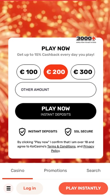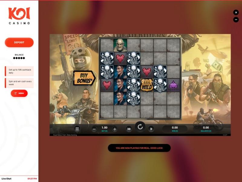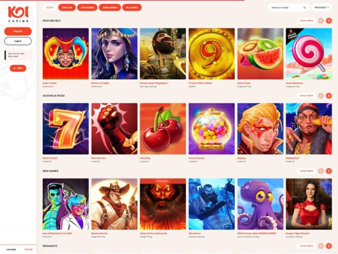 Infelizmente, o Koi Casino também não oferece muitas promoções. Ainda assim, os jogadores recém-registrados recebem um bom bônus de boas-vindas, enquanto os jogadores regulares têm acesso a cashback diário, torneios de slots e Drops&Wins no cassino e no cassino ao vivo.