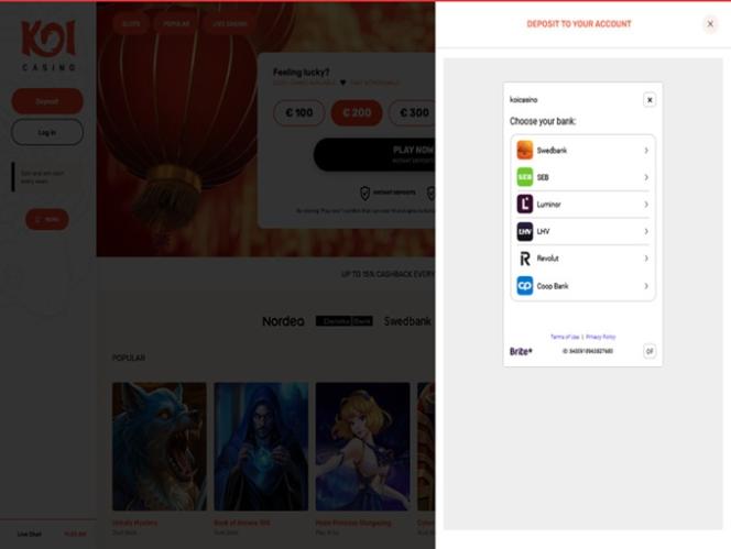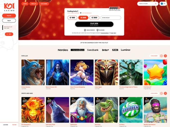 O Koi Casino é um cassino online que opera sob as leis de Curaçao. Possui licença e é regulamentado pela Antillephone NV e é voltado para jogadores da Noruega, Alemanha, Dinamarca, Canadá e Nova Zelândia.
