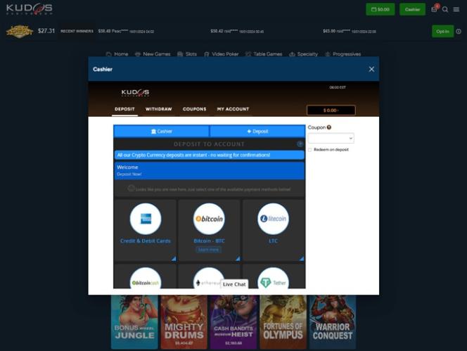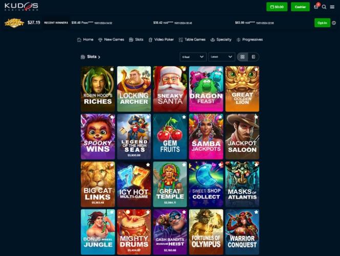 O Kudos Casino é um site de apostas online pertencente e operado pela Internet Gaming Services, do Reino Unido, o mesmo grupo que administra o cassino online iNetBet. O cassino utiliza o software da RTG e oferece pagamentos rápidos de ganhos, o que o torna uma boa opção para apostadores americanos.