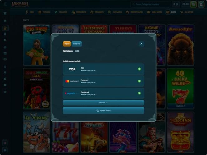 O Larabet Casino parece ter se adaptado a esses fatos, implementando diversas soluções populares em sua seção bancária. Assim, os jogadores que acessam o site terão a oportunidade de realizar pagamentos usando Bitcoin, Bitcoin Cash, Cardano , Ethereum, Litecoin, Ripple, Tether e USD Coin.