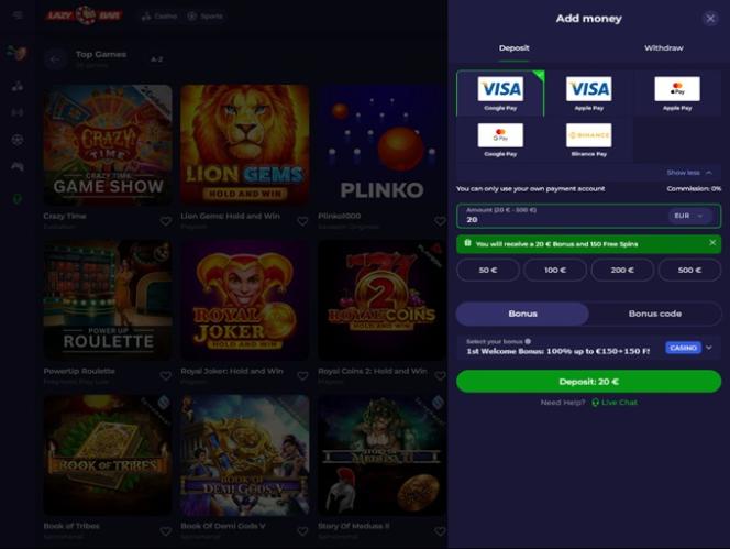 Além de oferecer um programa de fidelidade robusto para seus jogadores, o Lazybar Casino é conhecido por oferecer diversas promoções e bônus. Ao criar uma conta, você pode reivindicar um generoso bônus de boas-vindas que pode ser suficiente para várias sessões iniciais.