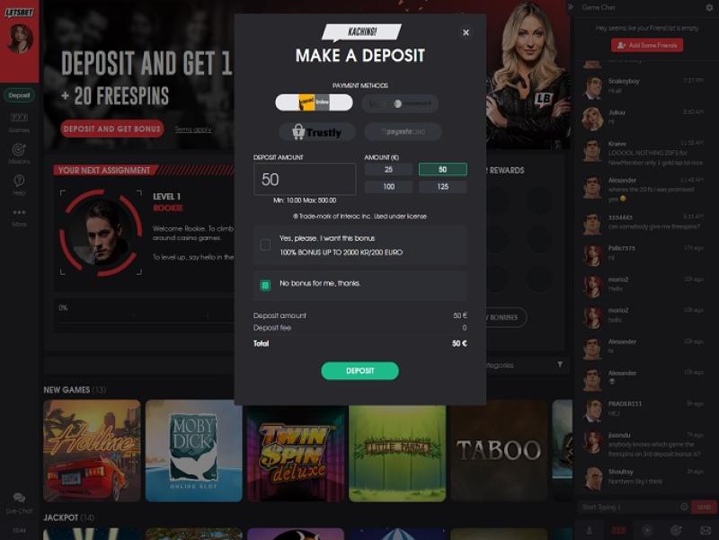 Não parece haver um programa de fidelidade no Letsbet Casino.