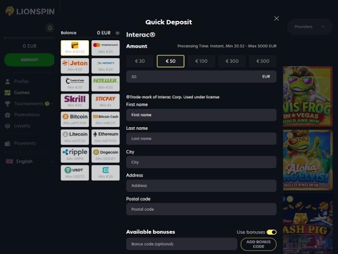 O LionSpin Casino é um cassino online pertencente a uma empresa registrada sob as leis de Curaçao. O operador tem como público-alvo jogadores do Canadá, Chile, Irlanda, Noruega, Finlândia, Polônia, Nova Zelândia e Brasil.
