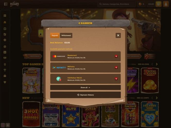 Em termos de aparência visual e estética, o site apresenta um tema bastante singular. O mascote principal da marca é um lagarto, e todo o ambiente tem uma temática do Velho Oeste, uma combinação original que confere ao cassino muita personalidade. A paleta de cores principal apresenta fundos escuros e tons de marrom, e a interface do usuário é fácil de navegar e intuitiva.