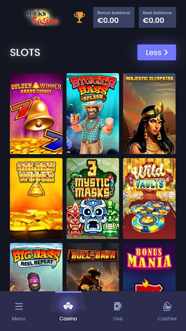 O Lucks Casino oferece uma seleção de caça-níqueis em vídeo, com uma ampla variedade de temas e recursos de jogos.
