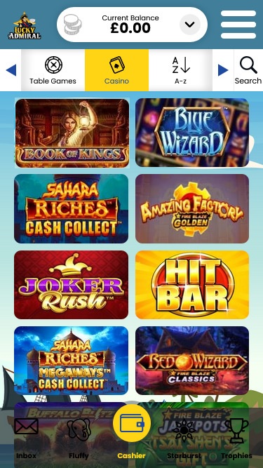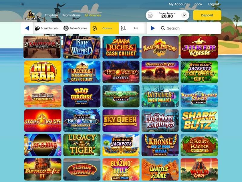 O Lucky Admiral Casino é alimentado por Microgaming, Net Entertainment, Playtech, 1x2gaming, Barcrest, Big Time Gaming, ELK Studios, EYECON, lightningboxgames, Oryx, Play'n GO, playson, Quickspin, Rabcat, Saucify, Yggdrasil, Wazdan, Realistic Games, Booming Games, Pragmatic Play, Nolimit City, Red Tiger Gaming, Spinomenal, Skywind, Triple Edge Studios, Northern Lights Gaming, Stormcraft Studios, Switch Studios, Bulletproof Games, All41 Studios, Gluck Games, Gameburger Studios, Pulse 8 Studios, Slot Factory, Neon Valley Studios, Golden Rock Studios, Shuffle Master, SpinPlay Games, Real Dealer Studios, GONG Gaming, On Air Entertainment, Buck Stakes Entertainment, Games Global, 2by2 Gaming, Ainsworth, Ash Gaming, Bally Technologies, bluberi, Blueprint Gaming, Leander Games, NextGen, Tom Horn Gaming, WMS, Inspired Gaming, Gaming Realms, Genii, SG Interactive, Gamomat, Red7Mobile, Scientific Games, Reel Time Gaming, Authentic Gaming, Iron Dog Studio, Old Skool Studios, Foxium, Just For The Win, The Games Company, Storm Gaming Technology, MetaGU, PearFiction Studios, Wild Streak Gaming, Slingshot Studios, Fortune Factory Studios, Jade Rabbit Gaming, 4ThePlayer, Gamevy, Crazy Tooth Studio, ReelPlay, Alchemy Gaming, Rarestone Gaming, Snowborn Games, Boomerang Studios, Hacksaw Gaming, Max Win Gaming, Gold Coin Studios, Half Pixel Studios, Peter And Sons, Aurum Signature Studios, Lucksome Gaming, Area Vegas, RAW iGaming and Wishbone Games e os jogos do cassino são oferecidos por meio de uma plataforma de jogo instantâneo baseada na web. Um site móvel também está disponível para aqueles que desejam jogar em seus smartphones ou tablets.