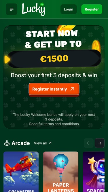 Finalmente, você pode se divertir com centenas de jogos de caça-níqueis instantâneos disponíveis no Lucky.co. Esses jogos se tornaram cada vez mais populares por sua simplicidade e regras diretas, com algumas das escolhas mais populares entre os jogadores sendo Aviamasters, Aviator, Plinball Machine, Paper Lanterns, Spaceman, SpaceXY, Kite Festival Crash Games e SKyrocket.