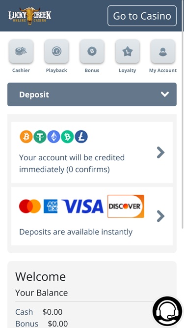 O Lucky Creek Casino não oferece nenhum tipo de programa de fidelidade aos seus jogadores.