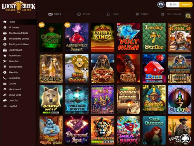 Os jogos de slots da Saucify estão disponíveis no Lucky Creek Casino, e os jogadores podem esperar uma grande variedade de slots, tanto de vídeo quanto clássicos, embora o catálogo não alcance a quantidade de títulos de líderes do setor como a Microgaming. Mesmo assim, os slots são bem elaborados e há uma grande variedade de temas e recursos disponíveis para atrair os jogadores.