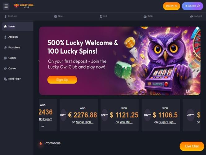 Caso decida entrar no mundo do Lucky Owl Club e se tornar parte de sua comunidade, você pode contar com uma infinidade de promoções empolgantes e bônus atraentes.